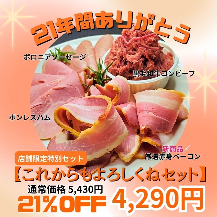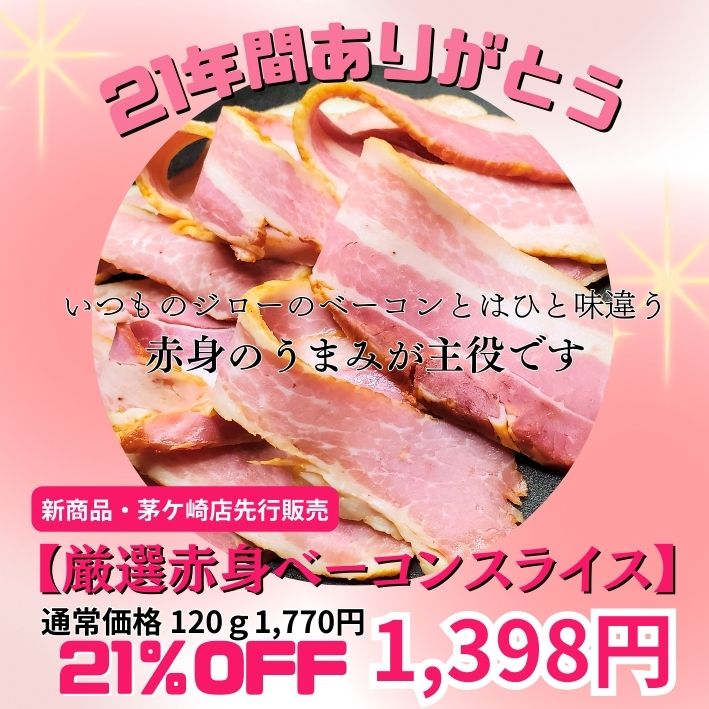 新商品「熟成赤身ベーコン」と「限定特別セット」を21%OFFで販売します!